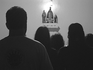 A reza do terço marca o início da comemoração, que une religião e festividade. O voluntário Mário Egídio Neves conduz a oração e celebra o retorno da festa que, há dois anos, foi vetada devido à má estrutura do local onde acontecia. “As pessoas não acreditavam que poderíamos continuar. “Devemos tudo a Nivalda Amaral, que ficou de sol a sol procurando materiais para melhorar o lugar”, afirma ele. E Nivalda, timidamente complementa: “Não me vejo longe da Sociedade. “Para nós a Festa do Tamboril é, além de tudo, um momento de integração muito importante.”